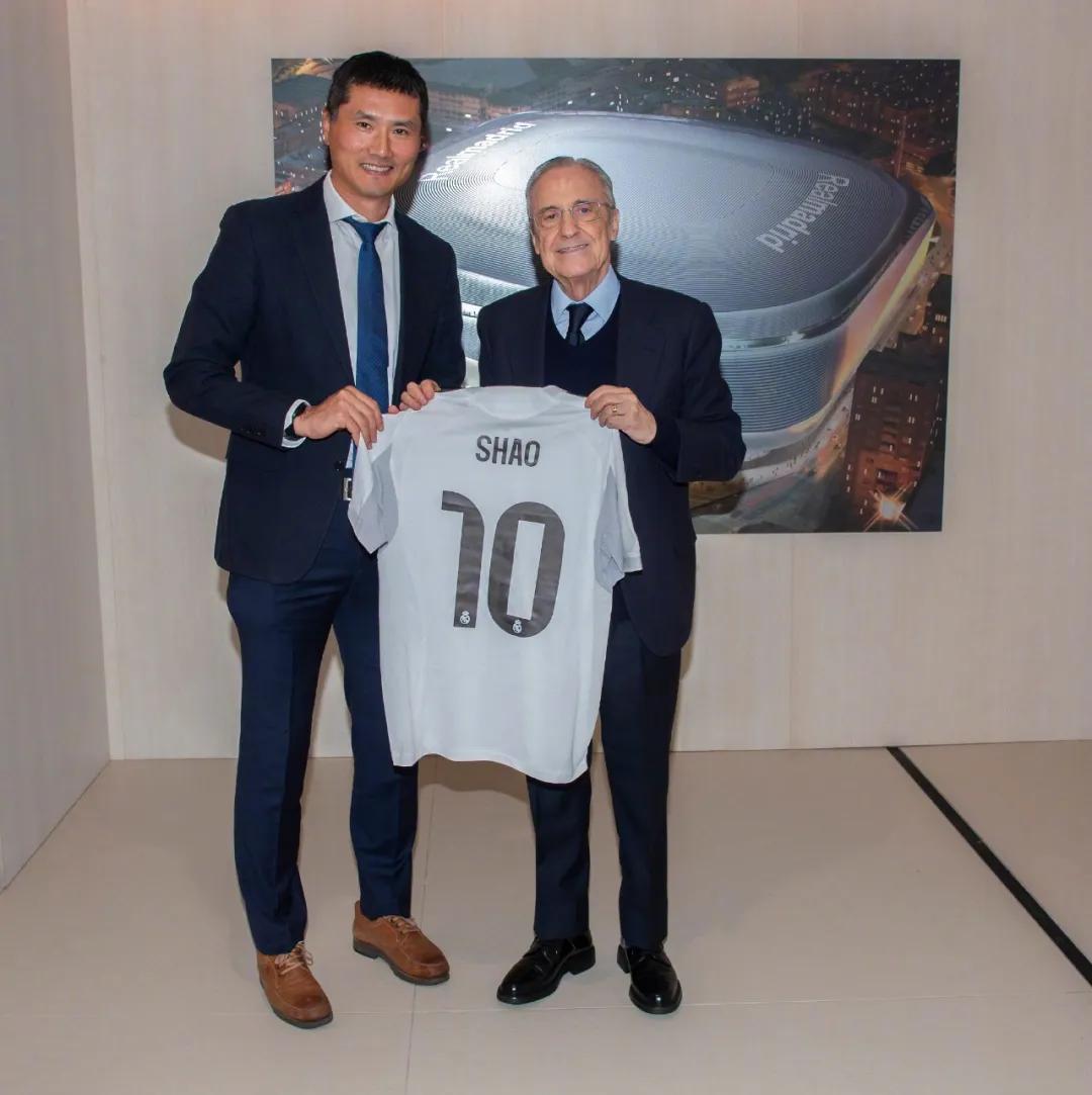 On the same day, Real Madrid issued a statement: “Real Madrid warmly welcomed Mr. Shao Jiayi, head coach of the Chinese men’s national football team. President Florentino Pérez had a cordial meeting with Coach Shao, exchanging jerseys. Mr. Shao toured the Real Madrid Sports City, observed youth team training, and engaged in professional discussions with fitness coach Pintus and medical director Dr. Niko Mihic.”