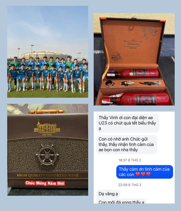 On his personal page, Coach Đinh Hồng Vinh expressed his happiness upon receiving a meaningful gift from his players. “During the Tet holiday, receiving a small but heartfelt gift from the U23 Vietnam boys,” Coach Đinh Hồng Vinhshared.