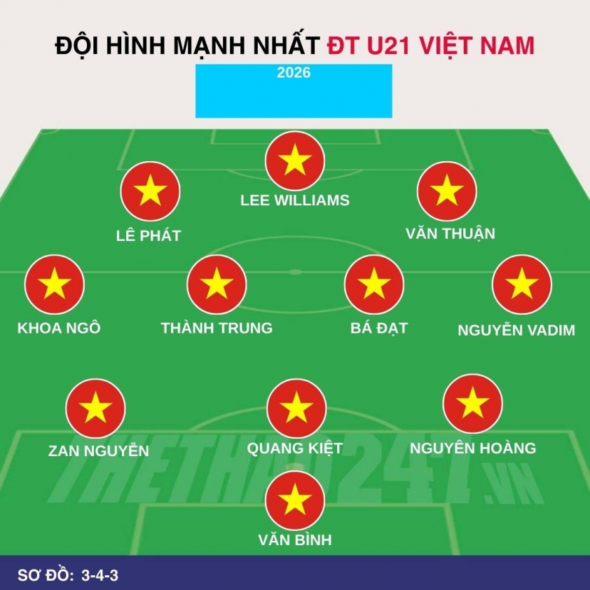 Up front, the trio of Lê Phát (Ninh Bình), Lee Williams (CA TP.HCM), and Văn Thuận (Ninh Bình) promises to apply strong pressure on opponents. Lee Williams can play as a striker, with good physique and versatile finishing skills. Lê Phát operates widely, using his speed to exploit spaces. Văn Thuận is sharp in penetrating the penalty area. This setup allows Vietnam U21 not only to increase direct pressure but also to execute flexible and effective wing attacks.