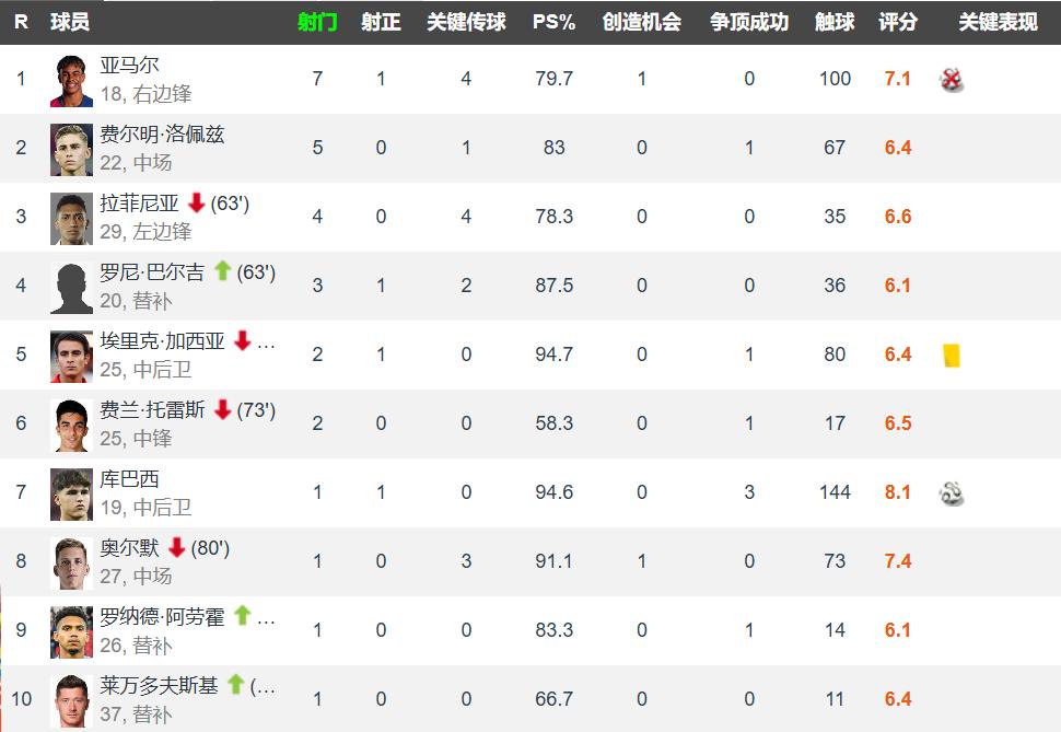 The most expensive forward on the pitch in this matchYamal had 7 shots with 1 on target, Fermin 5 shots but none on target, Raphinha 4 shots with none on target, Roni came off the bench with 3 shots and 1 on target, Eric Garcia 2 shots and 1 on target, Ferran 2 shots with none on target.... It seemed like Barcelona players left their shooting boots in the locker room and played wearing “high heels”—it was hard to describe.