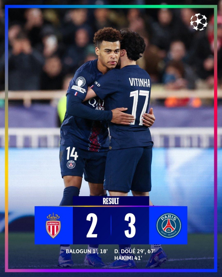 Yet, PSG’s squad quality eventually made the difference. Midway through the second half, Doué completed his brace with a decisive low shot from the edge of the box, putting the visitors ahead. From then on, PSG aimed to close out the tie, while Monaco barely threatened, aside from a long-range shot by Denis Zakaria that missed the target.