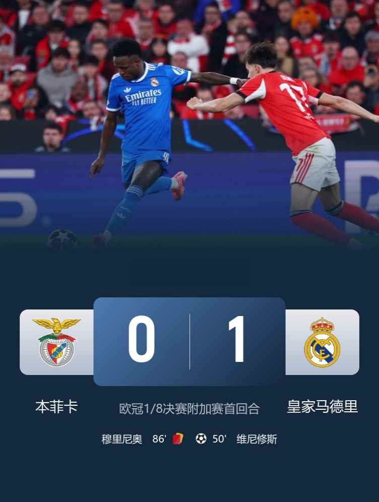 Benfica 0-1 Real MadridIn this match, Vinícius scored the decisive goal and was subject to discrimination that caused the game to be paused, while Mourinho received a red card against his former club! Benfica’s players and fans appeared unable to accept defeat. Real Madrid successfully avenged their prior loss and secured a valuable away win to take the advantage in qualification. Vinícius is indeed capable of performing in big games, but he can also provoke trouble; his celebration carried a somewhat provocative tone. The young star needs to mature and develop emotional control to become a true football superstar.