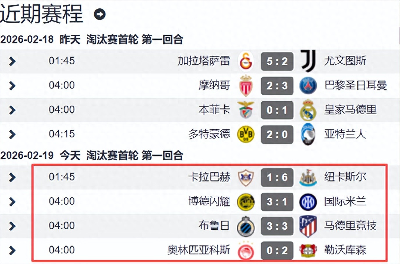 In the early hours of the third day of the Lunar New Year (February 19), all four matches of the second day of the Champions League knockout play-off first leg ended. Six Premier League teams are confirmed for the knockout stage, Serie A teams underperformed badly, Bundesliga teams were very organized, and two major upsets happened overnight!