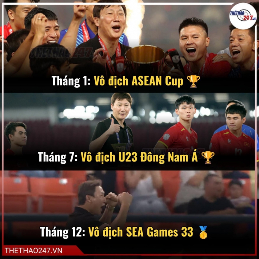 After more than 20 months working in Vietnam, Coach Kim Sang Sik made a significant impact by helping Vietnamese football win a treble in 2025: winning the 2025 AFF Cup, the Southeast Asian U23 Championship, and the gold medal at the 33rd SEA Games. In the AFF Cup, Vietnam convincingly defeated Thailand at Rajamangala Stadium with an aggregate score of 5-3, showing resilience after a controversial goal conceded. In the U23 Southeast Asian Championship, Vietnam won 1-0 over Indonesia thanks to a well-executed set-piece. At the 33rd SEA Games, the U22 team staged a stunning comeback from 0-2 to win 3-2 against Thailand, highlighting Coach Kim Sang Sik’s sharp tactics.