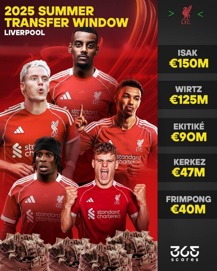 The most remarkable record of 2025 belongs to Liverpool, who made history in the transfer market with a total spending of £445 million and income of £265 million from player sales. The highlight was the deal for Alexander Isak from Newcastle for £130 million, making him the most expensive signing in English football history and the third most expensive worldwide. Earlier, they also broke the Premier League record with Florian Wirtz priced at £125 million. Along with Hugo Ekitike (£79 million), these three most costly summer signings all arrived at Anfield.