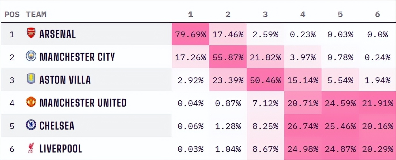 Following Wolves’ 2-2 draw with Arsenal, the data firm Opta updated its Premier League title probabilities using its supercomputer. The latest forecast shows Arsenal’s chances have dropped from over 90% in early February to 79.69%, a decline of ten percentage points. However, fans believe Opta’s model still underrates Manchester City, as City’s title probability after Arsenal’s draw with Wolves stands at just 17.26%, under 20%.