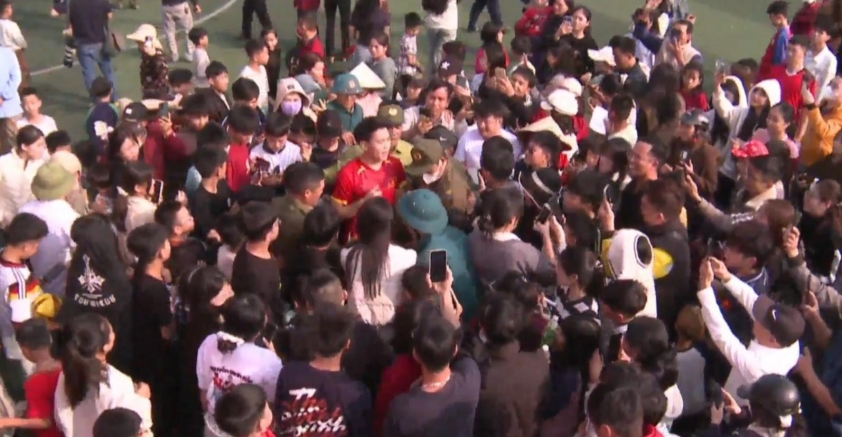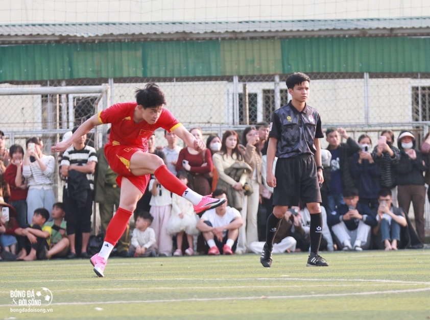 Although it was only a match between the hometown team of Yên Trung and a local business aiming to raise funds for those in need, the intensity generated by the game rivaled that of any professional competition. The presence of the “Top Scorer” of the 2026 U23 Asian Championship, currently playing for CAHN, turned the village pitch into a real “cauldron” on this spring day.