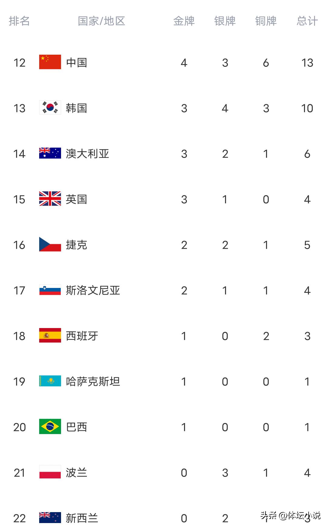 On February 22nd Beijing time, the Milan Winter Olympics will reach its last day of contests. The final five gold medals to be decided today include the women's 50km cross-country mass start, four-man bobsleigh, freestyle skiing halfpipe, women's curling, and men's ice hockey. Before the events start, let's review the current medal rankings: Norway stays at the top, the USA is second, the Netherlands has surpassed Italy, China ranks 12th missing out on Asia's number one spot, and Japan is in tenth place!