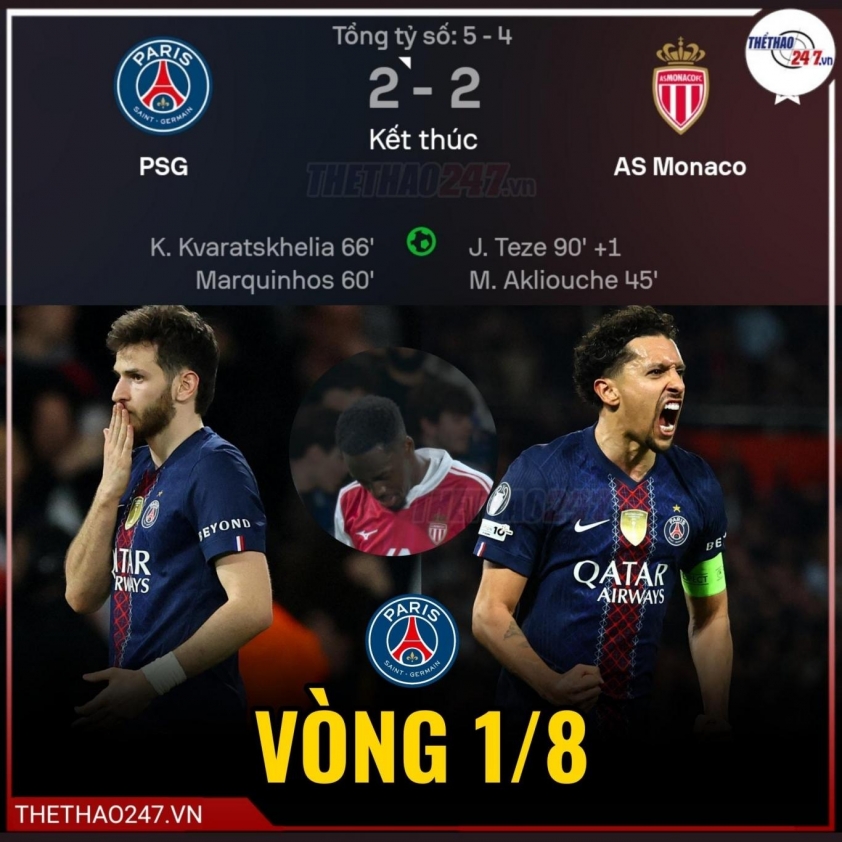 Paris Saint-Germain continues their quest to defend their Champions League title after overcoming AS Monaco with a 5-4 aggregate score in the two-legged playoff. The 2-2 draw in the second leg was enough for the French side to make their 14th consecutive appearance in the round of 16, despite facing difficult moments against an opponent reduced to 10 men on the field.
