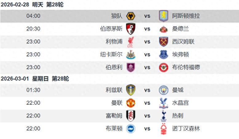 At 4:00 AM Beijing time on February 28th, the Premier League's 28th round begins with an early fixture, where the bottom-placed Wolves welcome top-three team Aston Villa at home.