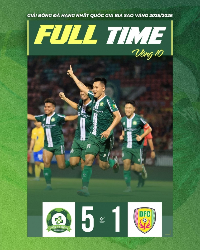 On the evening of February 27th, Dong Nai continued their impressive form by overwhelming Dong Thap with a 5-1 scoreline in Round 10 of the 2025/26 First Division, further cementing their stronghold on the top spot in the league rankings.