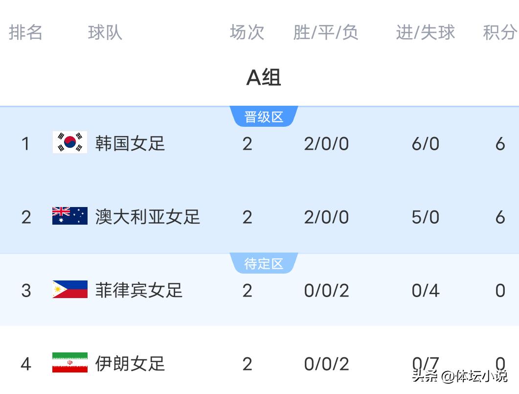 After the second round of matches, due to clear disparities in strength among the groups, the quarter-final picture has become very clear. Several title favorites all secured wins and advanced to the quarter-finals one round early without any surprises. North Korea, China, Australia, South Korea, and Japan all achieved two consecutive wins without conceding any goals, demonstrating impressive dominance. Of course, Japan's offensive power is undoubtedly the strongest, scoring 13 goals after two rounds, which is truly intimidating and can be called the sharpest spear!