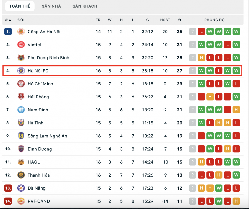 Just 4 minutes after the breakthrough goal, Hai Long doubled the lead with a precise finishing shot. At minute 90, Van Quyet successfully executed a penalty, sealing a 3-0 win for the purple-shirted team. This result helps Hanoi FC consolidate its 4th position on the ranking table with 28 points. However, the Capital's team still trails the top-ranked CAHN FC by 8 points and has played two more matches than this opponent.