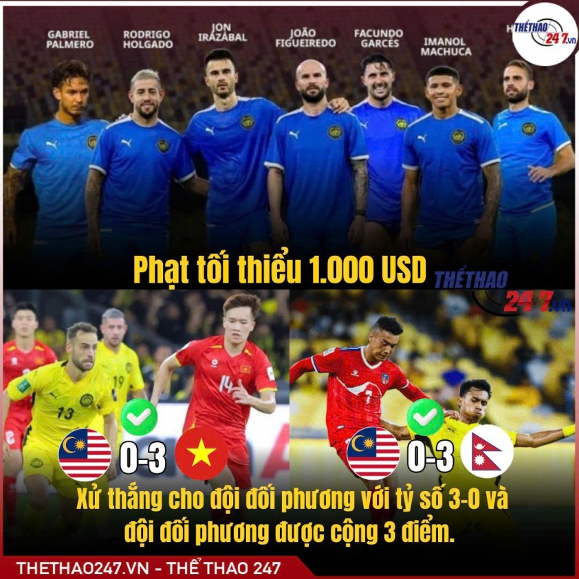 The newspaper Superball reported: "Vietnam rises, Malaysia falls sharply on FIFA rankings after AFC penalty". According to Indonesian media, Malaysia was ruled to lose 0-3 in two matches against Nepal and Vietnam in the 2027 Asian Cup qualifiers, and their previous victories were also annulled. The cause stems from this team using up to seven naturalized players who did not meet eligibility requirements.