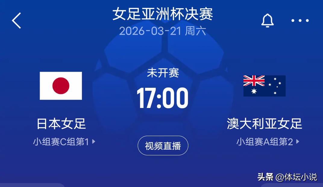The time for this final has been confirmed: it will kick off at 17:00 on March 21. We look forward to an精彩的对决到来. Australia women's football team is in a相对弱势 position; to upset Japan, they must rely on counter-attacks to have hope of winning. Let us wait and see,加油!