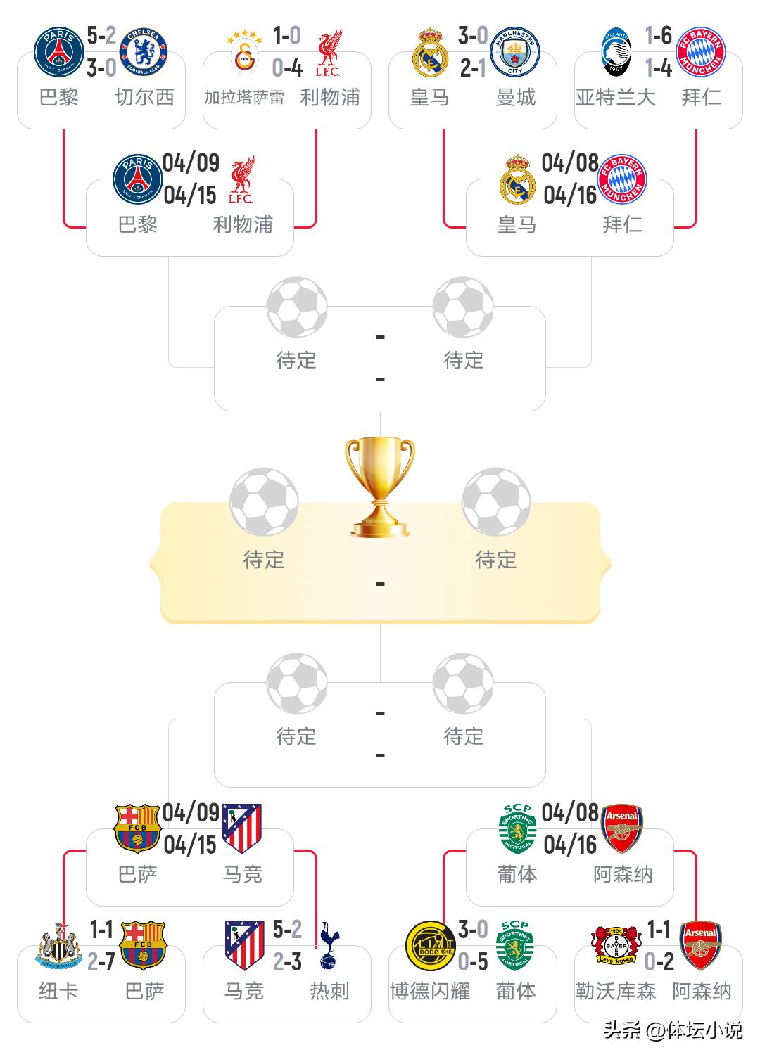 The quarter-final draw has now been announced: Real Madrid clashes with Bayern Munich in a豪门 showdown. Arsenal, with excellent luck, faces Sporting CP and is practically预定 for the semi-finals. Defending champion Paris will battle Liverpool, while La Liga sees a derby between Barcelona and Atlético Madrid. Exciting matchups are anticipated—let's wait and see!