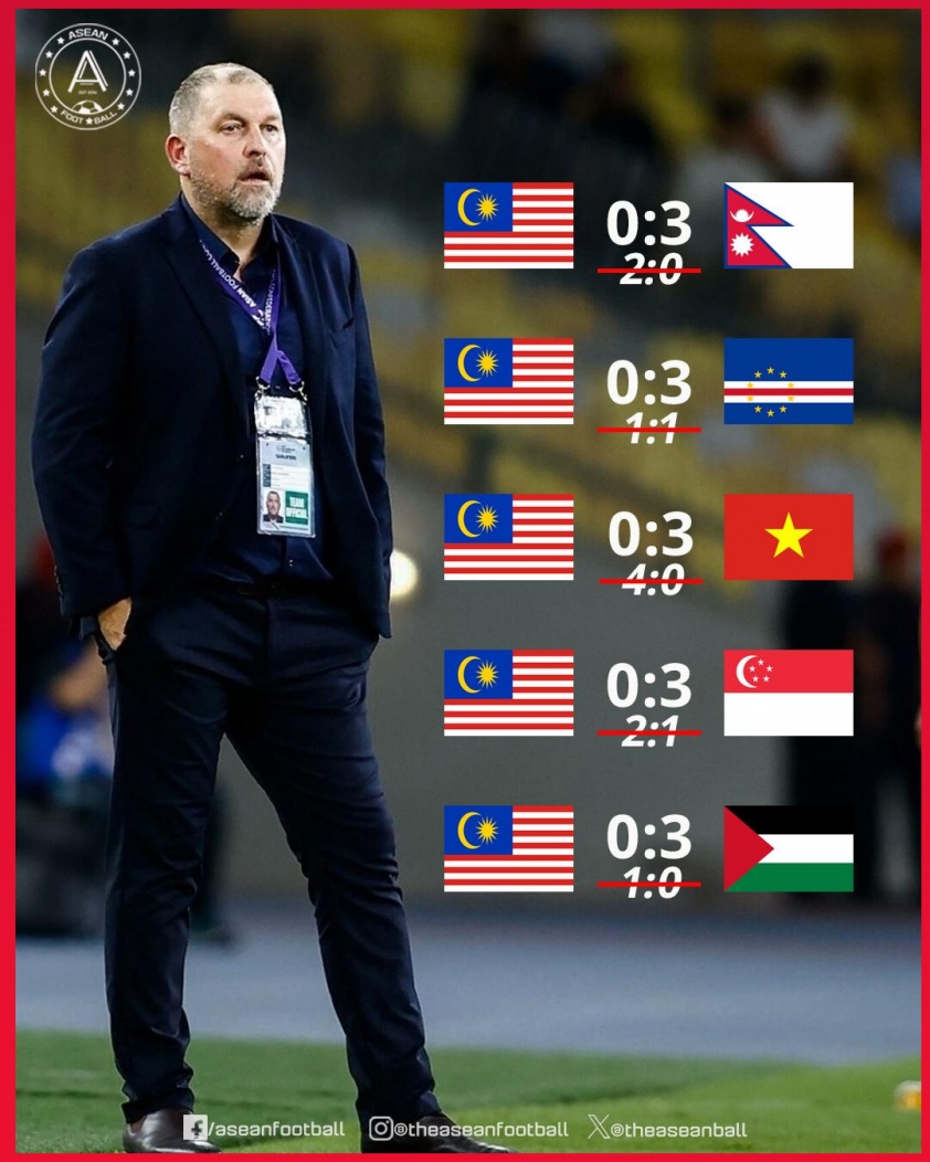 Previously, FIFA also issued similar penalties for three of Malaysia's friendly matches against Cape Verde, Singapore, and Palestine in 2025. Overall, "The Malayan Tigers" have suffered five 0-3 forfeits within months, resulting in a deduction of approximately 50 FIFA ranking points and a steep decline on the world rankings.