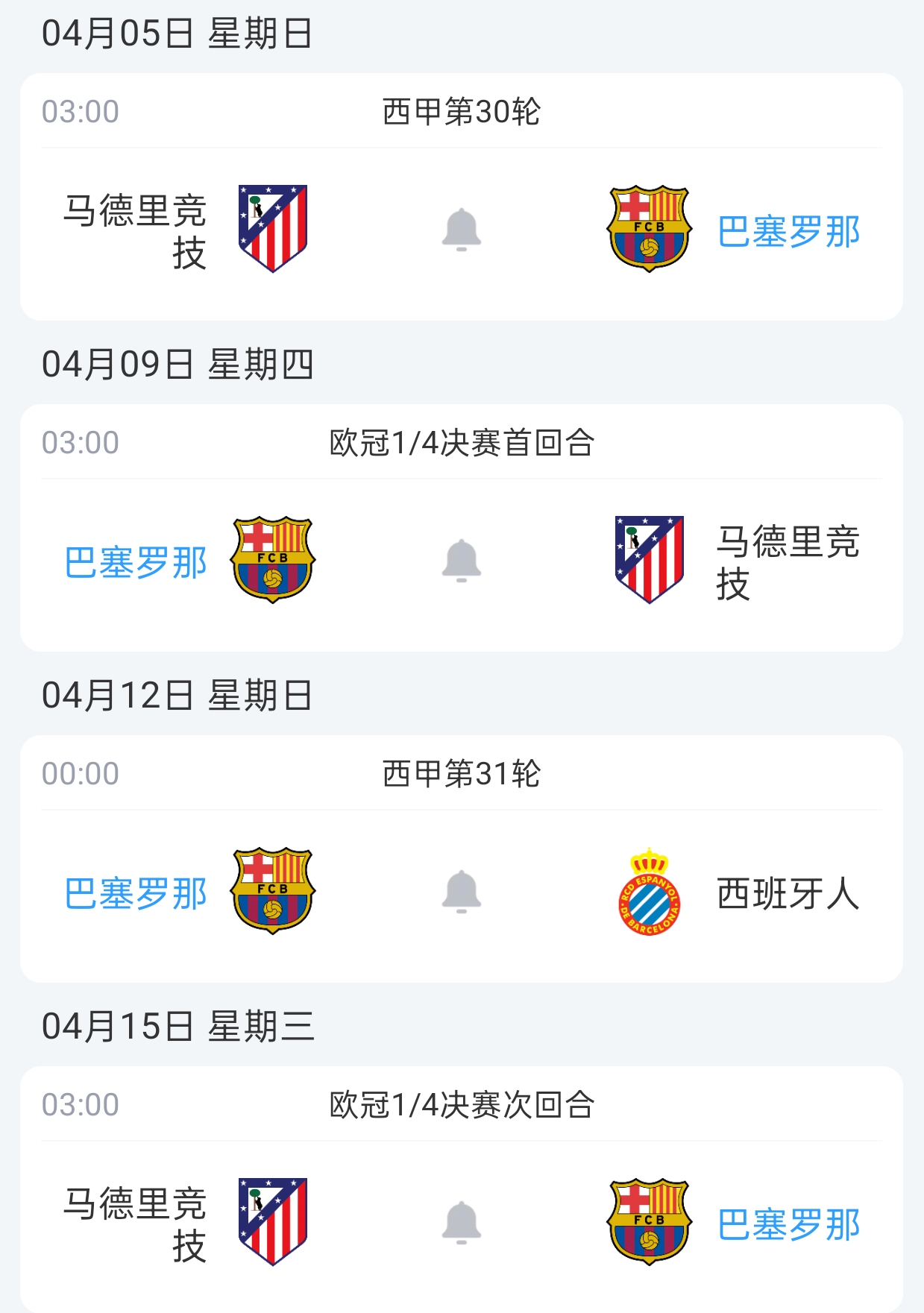 Barcelona and Atletico Madrid will play three more times this season, having already met three times.In La Liga Round 19, Barcelona defeated Atletico 3-1 at home; then in the Copa del Rey semi-finals, Barcelona lost 4-0 away to Atletico but won 3-0 at home, still exiting the Copa del Rey semi-finals with a 3-4 aggregate score.Barcelona and Atletico Madrid will have their sixth encounter this season. Barcelona aims for the La Liga title and Champions League advancement, while Atletico seeks a top-three league finish and further Champions League progress, leading to intense battles.