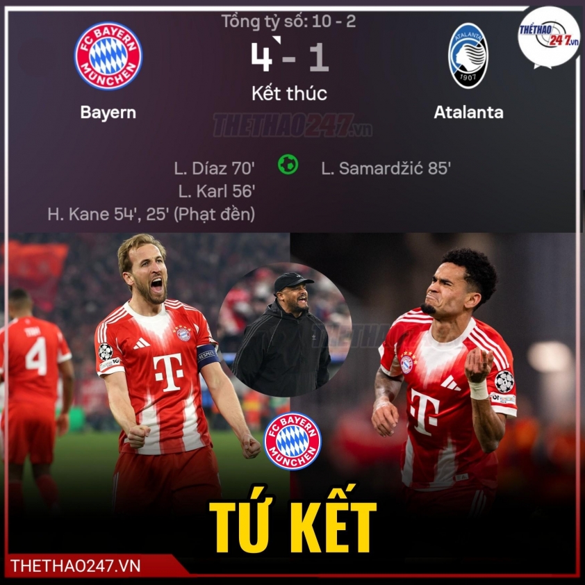 Liverpool made a strong statement by reversing a 0-1 first-leg defeat against Galatasaray with a 4-0 victory at Anfield. Meanwhile, Arsenal demonstrated continued stability by defeating Bayer Leverkusen 2-0, advancing with an aggregate score of 3-1. "The Gunners" now face a major opportunity to aim for a historic season with ambitions to conquer multiple trophies.