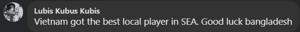Additionally, a user named Lubis Kubus Kubus declares: "Vietnam possesses the best domestic players in Southeast Asia. Good luck to Bangladesh".
