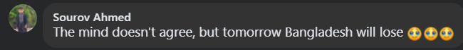 Account Sourov Ahmed says: "Though unwilling to admit it in my heart, perhaps Bangladesh will lose tomorrow".