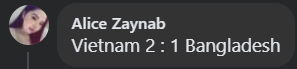 Specifically, an account named Alice Zaynab predicts: "Vietnam 2-1 Bangladesh".