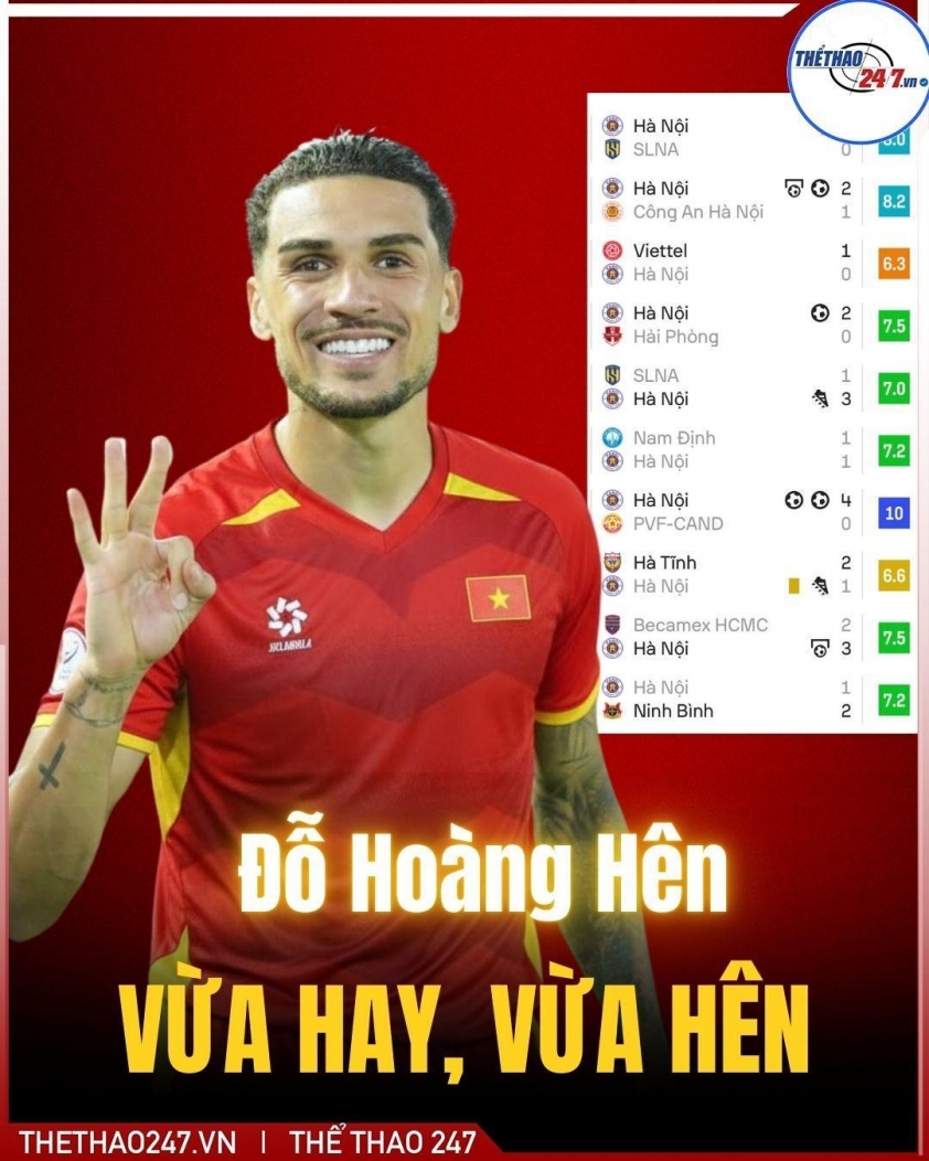 The form of the midfielder born in 1994 is also very impressive, as he scored 6 goals in 10 matches for Hà Nội FC this season, becoming the player who contributed to the most goals for the capital's team.