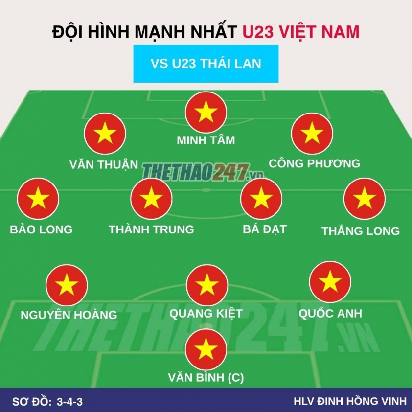 Besides the starting lineup, Vietnam U23 also possesses notable backup options for the second half. Names like Dang Duong, Nguyen Vadim, or Quang Huy could be deployed to increase creativity and speed in the forward line.
