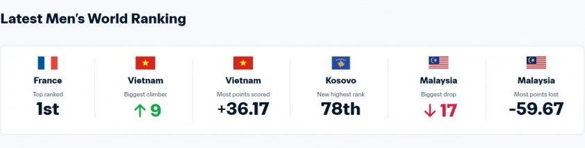 The impressive resurgence of Vietnamese football has drawn special attention from the Asian Football Confederation (AFC). In its announcement about the latest rankings of Asian teams, AFC specifically mentioned Vietnam's national team. "Vietnam is the country with the biggest leap, rising 9 places to position 99 within the top 100, while Malaysia dropped 17 spots to rank 138."Additionally, AFC also posted several images of coach Kim Sang Sik and his team after the 3-1 victory over Malaysia on March 31.