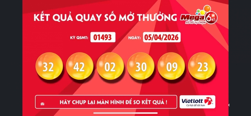 Vietlott 5/4/2026 - Vietlott Mega 6/45 lottery results for April 5, 2026
