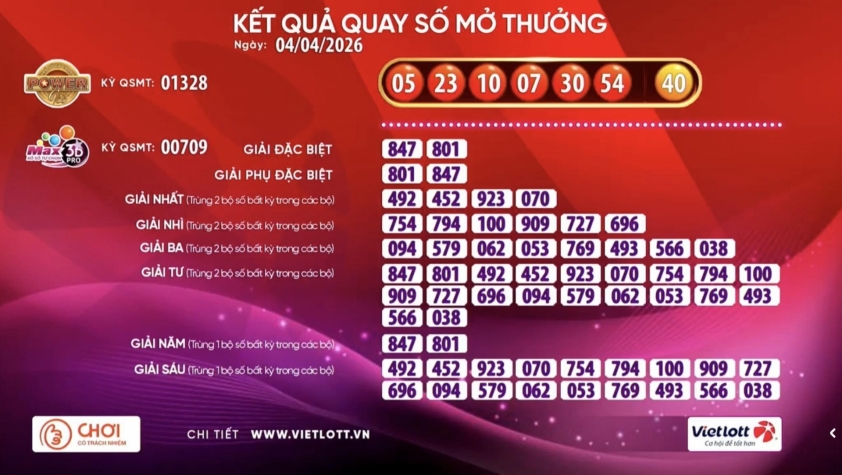 Get the fastest and most accurate Vietlott Max 3D lottery results for April 6, 2026.
