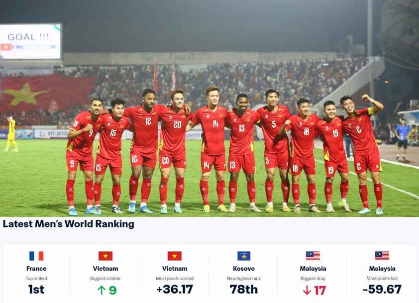 The FIFA rankings undergo a historic change, Vietnam's national team advances remarkably fast.