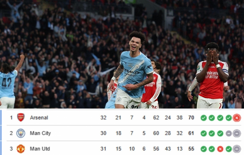 Specifically, Man City is fully capable of winning all their remaining matches to reach 85 points. But the madness lies in this: Arsenal, despite leading, could also end the season with exactly that same point tally if they lose in the direct confrontation with the team led by Coach Pep Guardiola but win all their other games.
