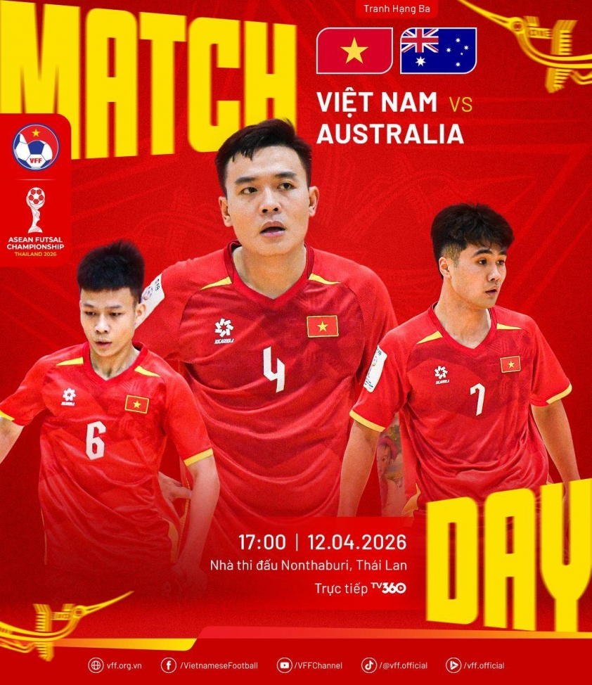 (Live football) - The Vietnam futsal team enters the third-place match of the 2026 Southeast Asian Futsal Championship against Australia.