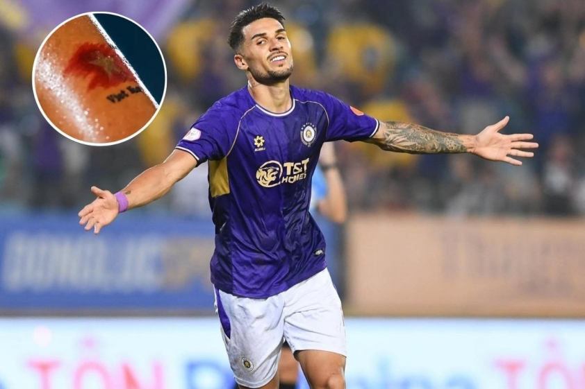 Beyond his on-field performance, Hanoi FC's striker also drew attention with his new tattoo. When asked about this detail, Hoàng Hên revealed it is a mark with deep personal significance. “I have many tattoos, but this one is very important. Because Hên is Vietnamese and the number 9 is Đỗ Hoàng Hên,” he shared.