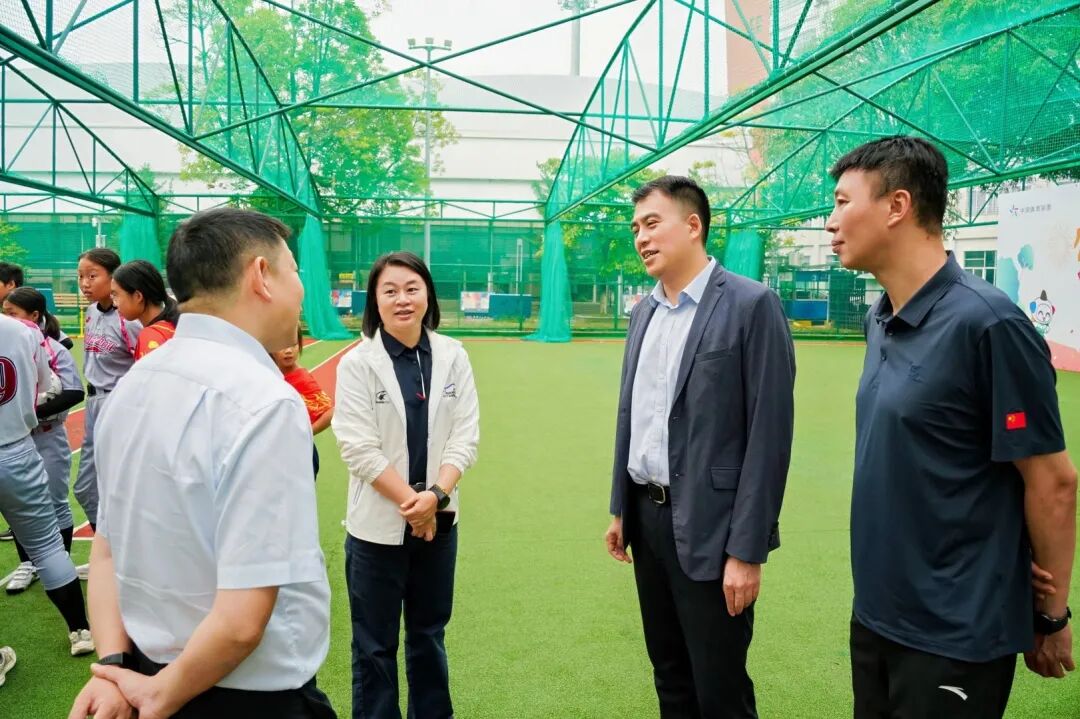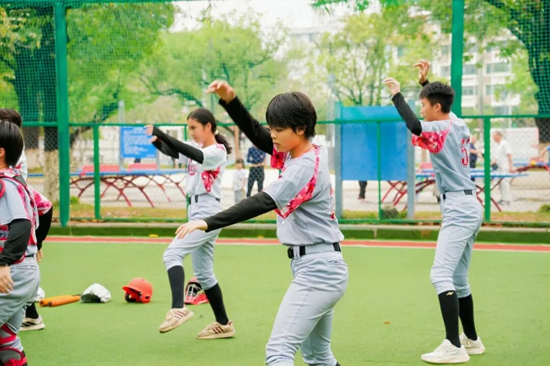 Following that, the softball team from the district amateur sports school presented an impressive display of softball skills and engaged in intense group matches, showcasing vibrant competitive spirit on the newly completed field.