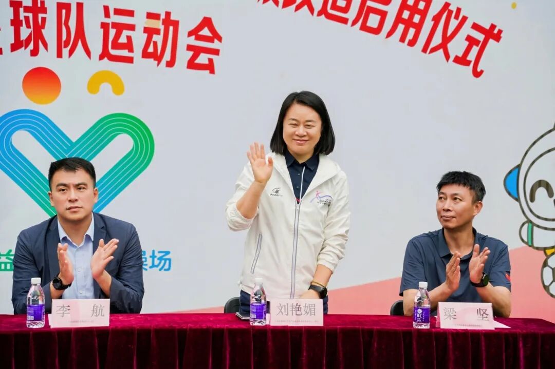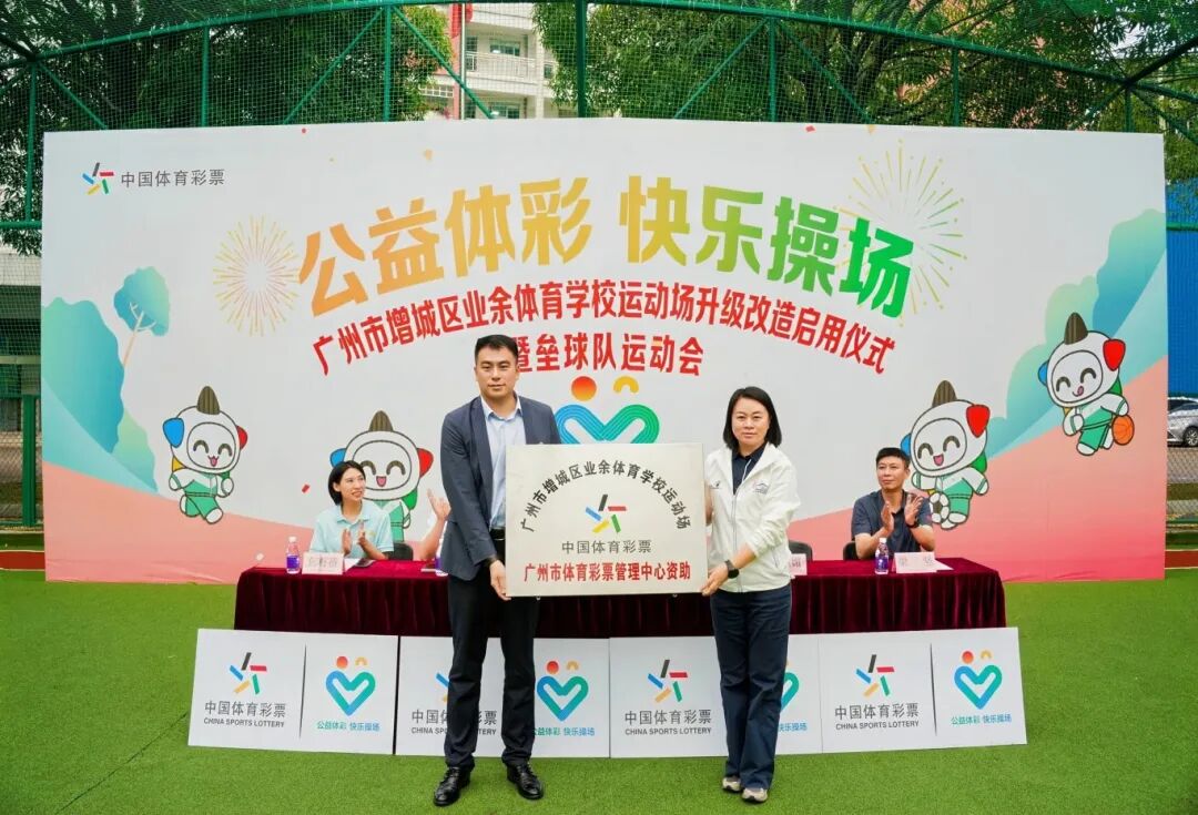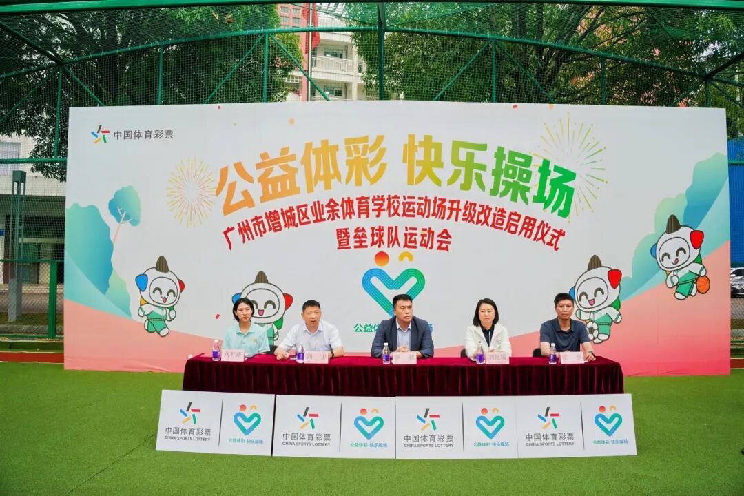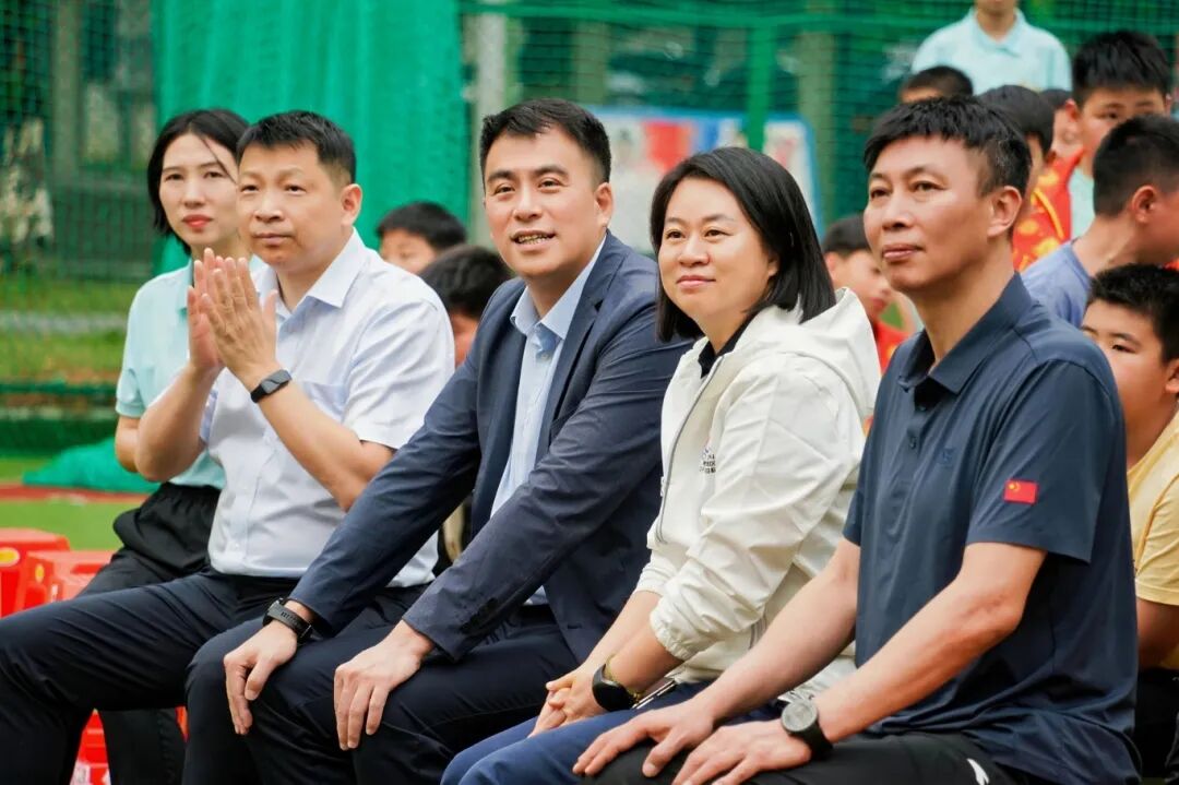 Leaders and guests including Li Hang, Director of Guangzhou Sports Lottery Management Center; Liu Yanmei, Party Secretary and Director of Zengcheng District Culture, Radio, Television, Tourism, and Sports Bureau; Liu Wei, Party Member and Deputy Director of the same bureau; Liang Jian, Head of Mass Sports and Competition Training Department at Tianhe Sports Center; and He Zibei, Principal of Zengcheng District Amateur Sports School, jointly witnessed this significant moment.