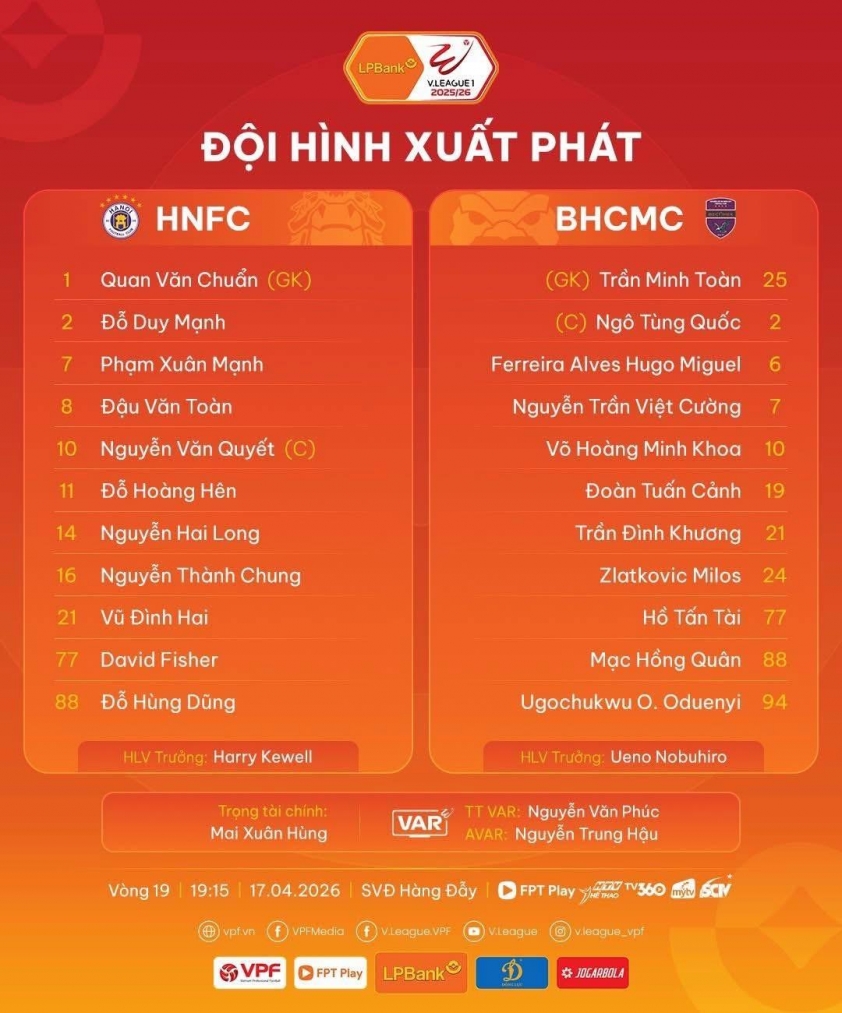Hanoi enters round 19 with a relatively relaxed mindset following a convincing 3-0 victory over Hà Tĩnh. Under coach Mano Polking, the capital's team still shows unpredictability, capable of explosive play but also occasionally dropping regrettable points. This lack of stability causes Hanoi to remain "stuck" in 4th place, despite the squad quality being rated as competitive enough for the top group.