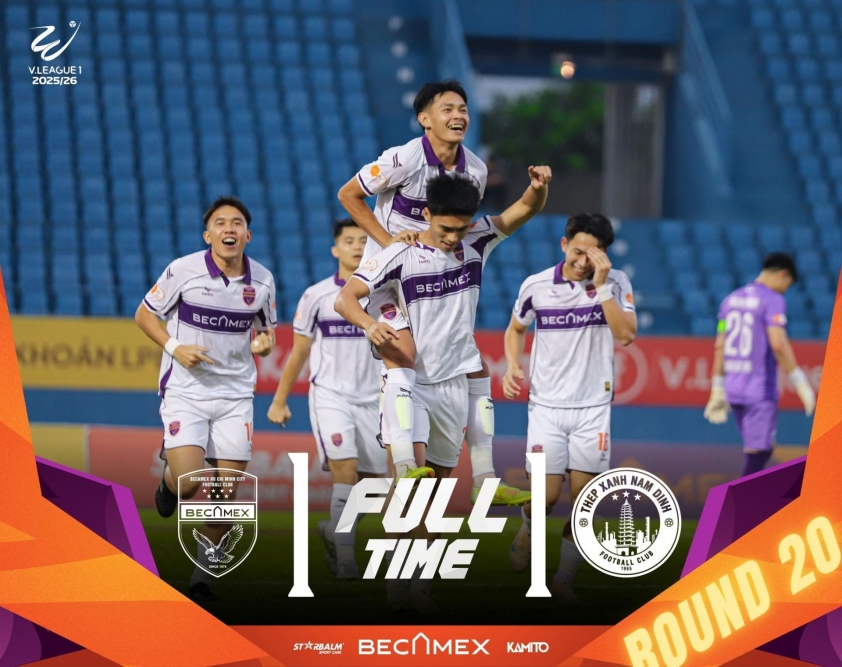 On April 25th at Binh Duong stadium, Nguyen Tran Viet Cuong once again became the standout player for Becamex TP.HCM by scoring against Nam Dinh in round 20 of V.League 2025/26. Although the home team only managed a 1-1 draw, the performance of the 2000-born forward was sufficient for him to continue making a strong impression on coach Kim Sang Sik ahead of Vietnam national team's upcoming training camps.