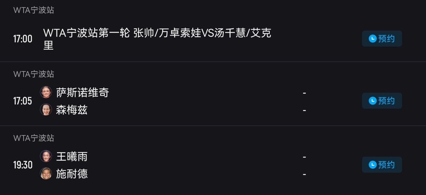 The WTA500 Ningbo event schedule for today (2025.10.13) includes Wang Xiyu versus Schneider, live on Youku Sports Channel.