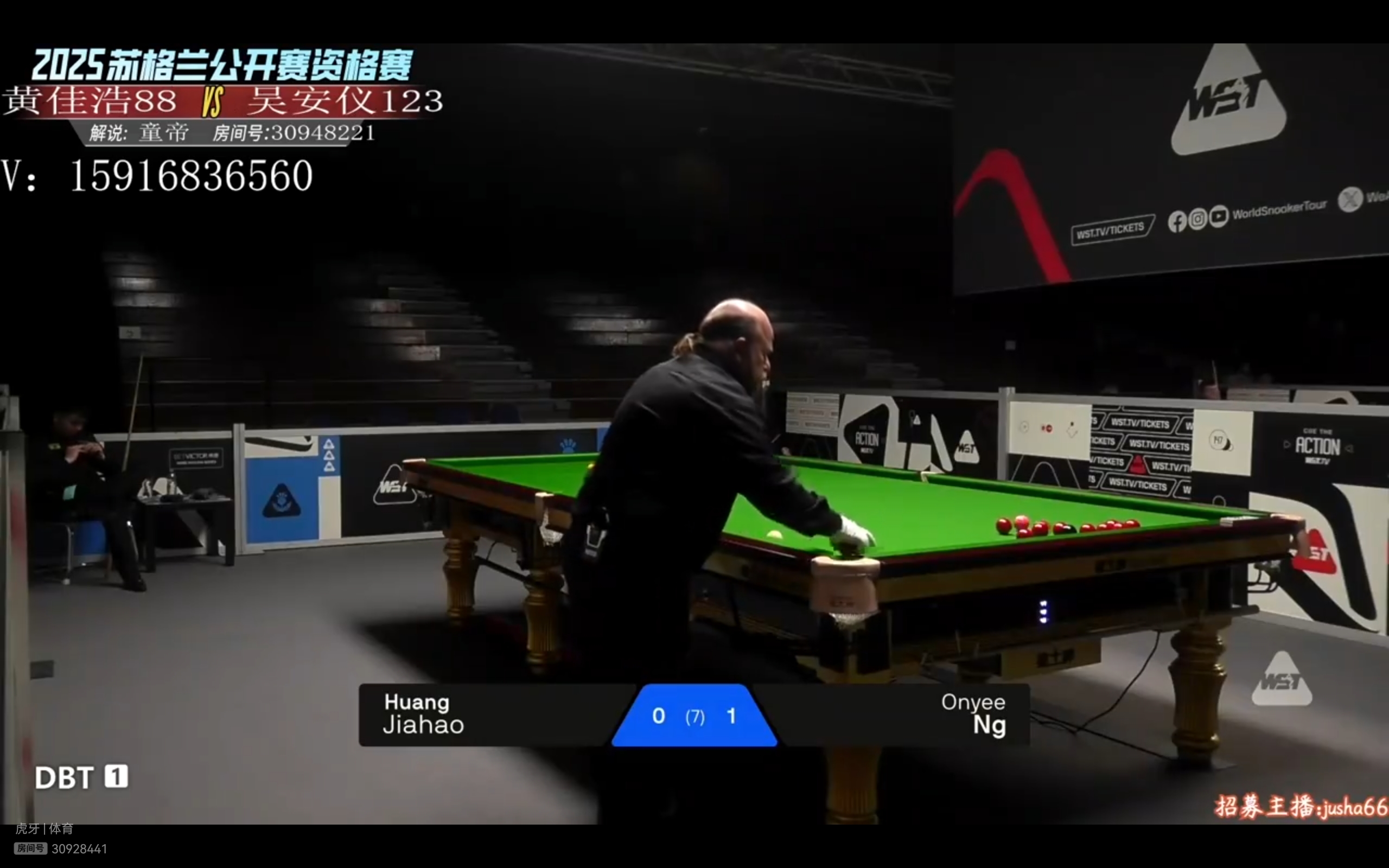 This match is played in a best-of-seven frames format; the first frame has just concluded with Wu Anyi defeating Huang Jiahao.