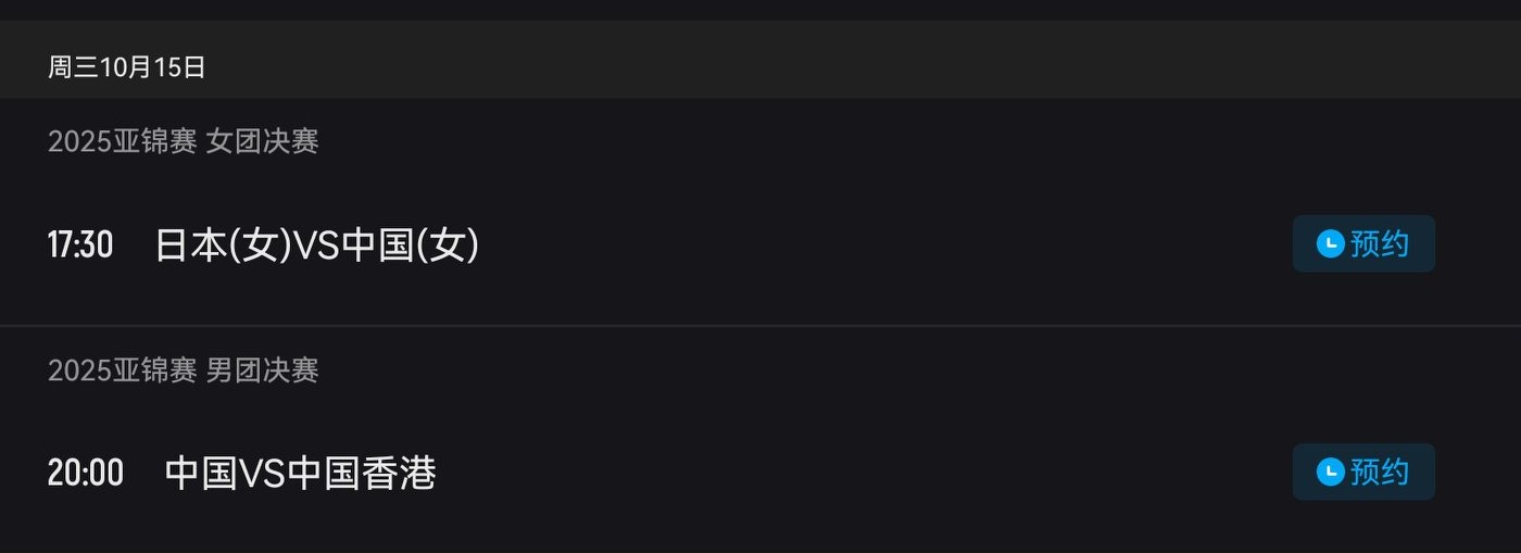 Today (2025.10.15), the Asian Table Tennis Team Championships will hold the men’s and women’s team finals, with the women’s final featuring China vs Japan and the men’s final featuring China vs China Hong Kong, streamed on Migu Video and Youku Sports Channel.
