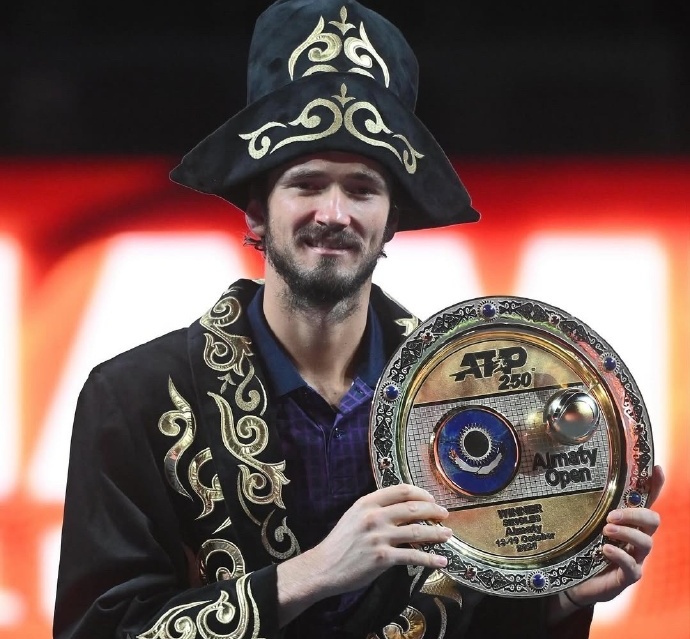 Back to the courts. Last night Beijing time, three ATP250 indoor hard court tournaments concluded last Wednesday. At the Almaty event, second seed Medvedev defeated eighth seed Moutet 7-5, 4-6, 6-3 to claim his 21st career title, ending a 29-month championship drought since the 2023 Rome event and breaking a six-match losing streak in finals. Interestingly, all 21 of Medvedev’s titles have come from 21 different cities, setting a record.