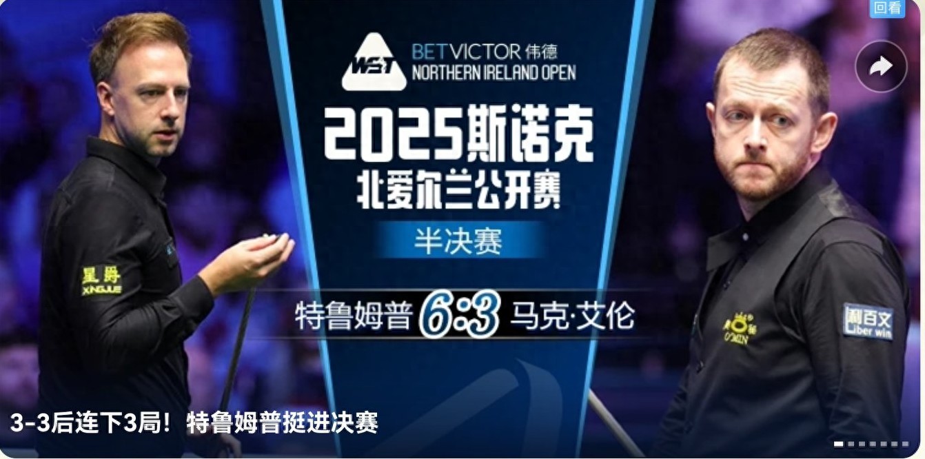 2. In the second semifinal, Trump advanced to the final by beating Mark Allen 6-3.