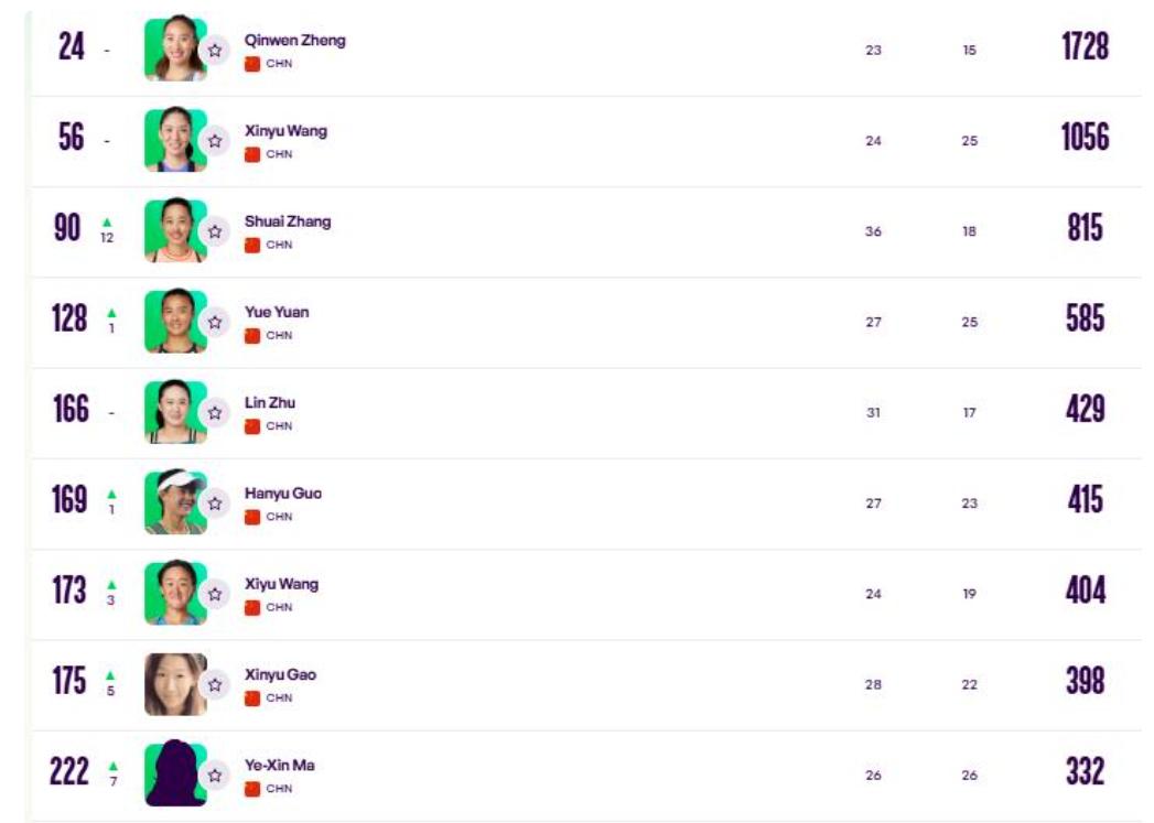 雖然TOP100中有鄭欽文、王欣瑜和張帥三位金花,境遇明顯較中國男子球員好,但對金花們明年在重大賽事中能否大放異彩、排名狂飆,部分人坦言「沒什麼信心」。