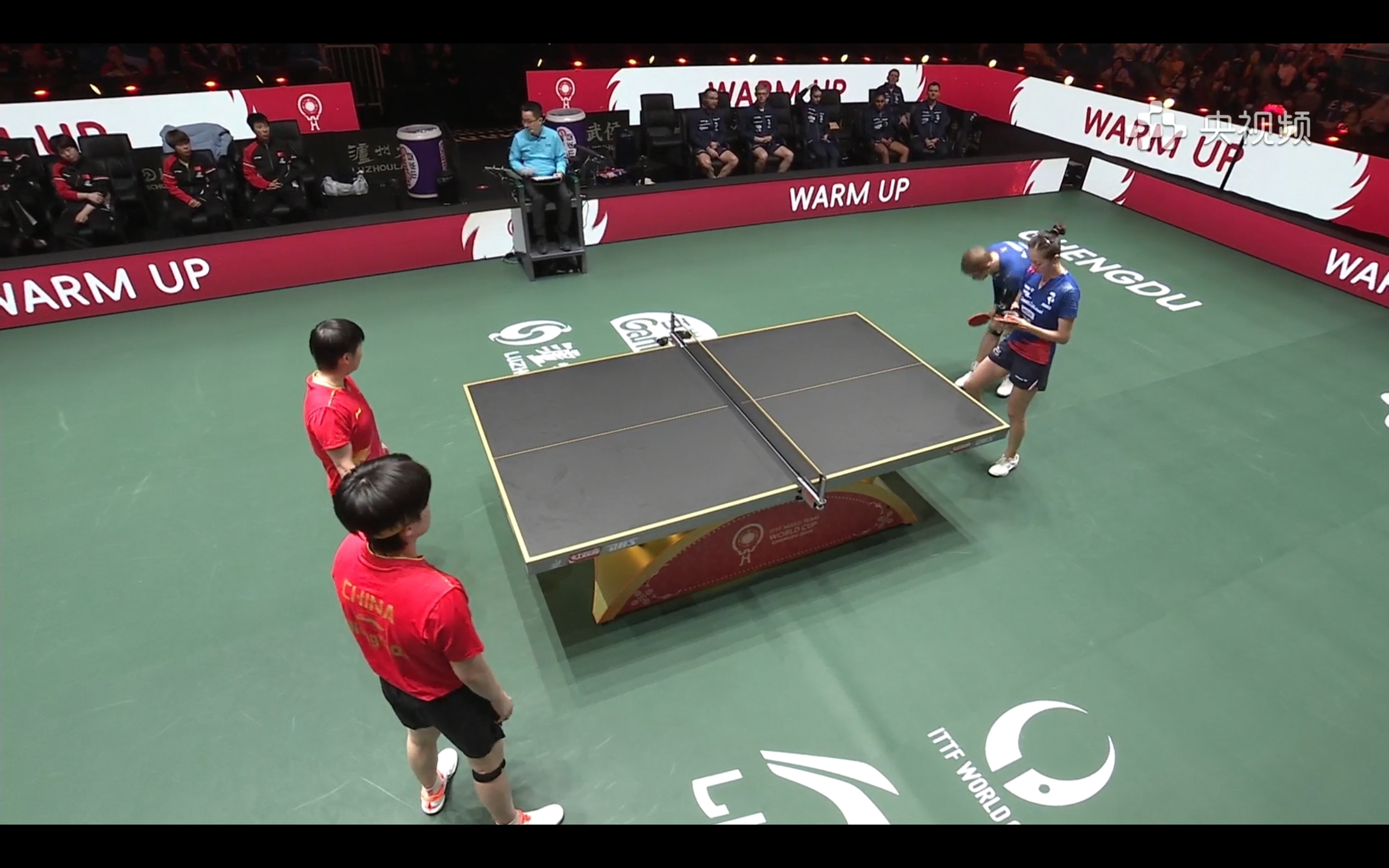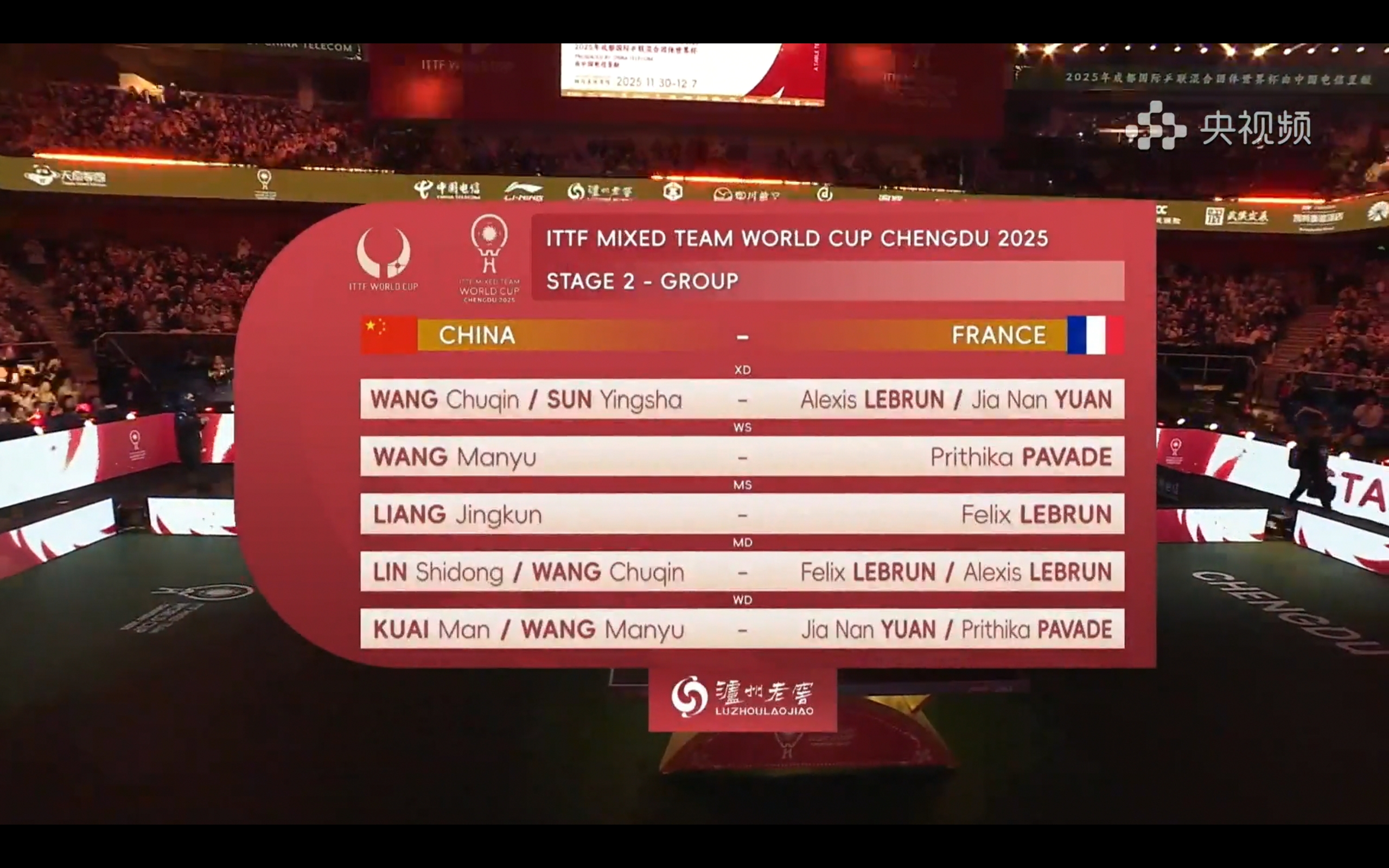 CCTV-5和央視頻正在直播乒乓球混合團體世界杯中國對法國的賽事。