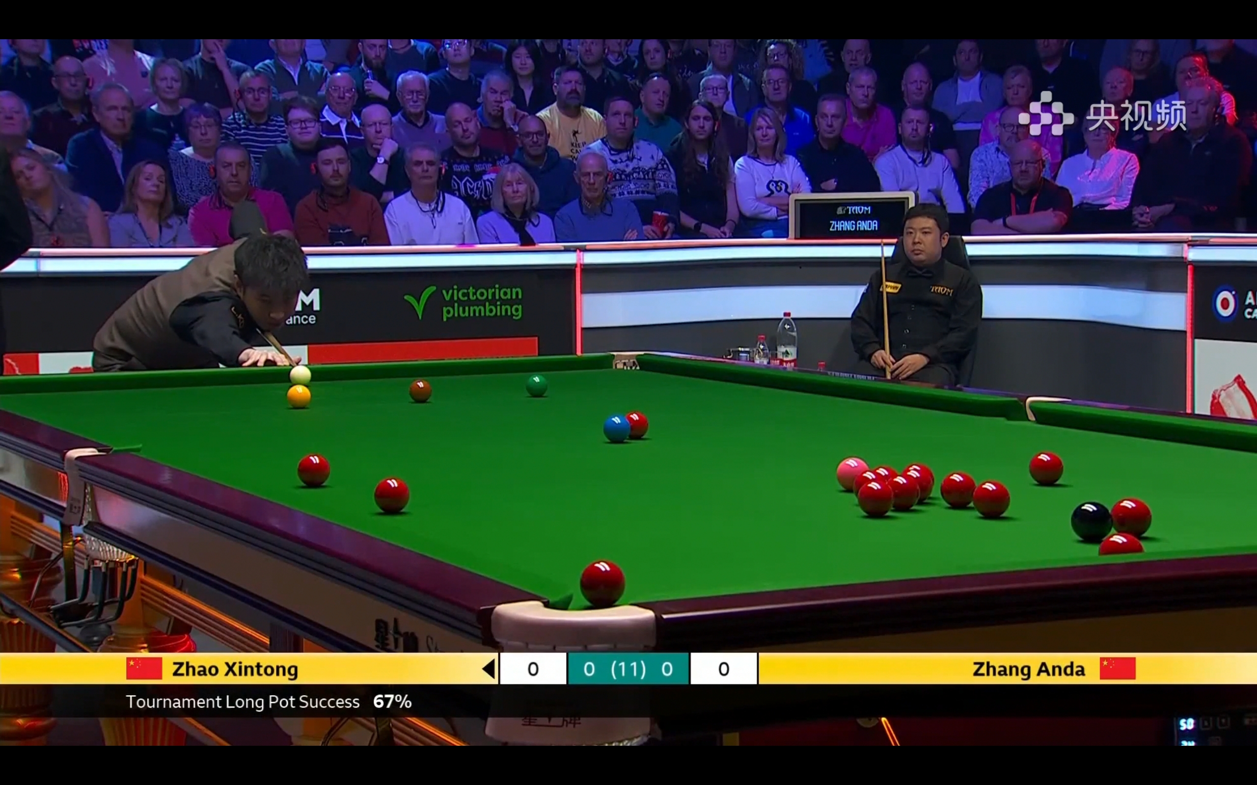 央視頻、虎牙直播平台及咪咕視頻正在直播斯諾克英錦賽16強賽事,對陣雙方為赵心童與張安達。