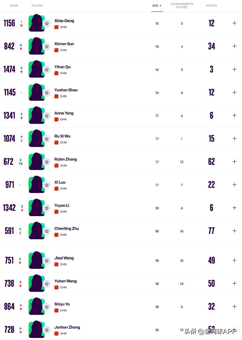 Youth is at its peak; these young U18 players have either already made their mark in junior competitions or started stepping into adult tournaments. With accumulating experience in major events and continuous refinement of their skills and tactics, this fresh wave of Chinese tennis talent will become the backbone of Chinese women's tennis in the future, writing new chapters of success.