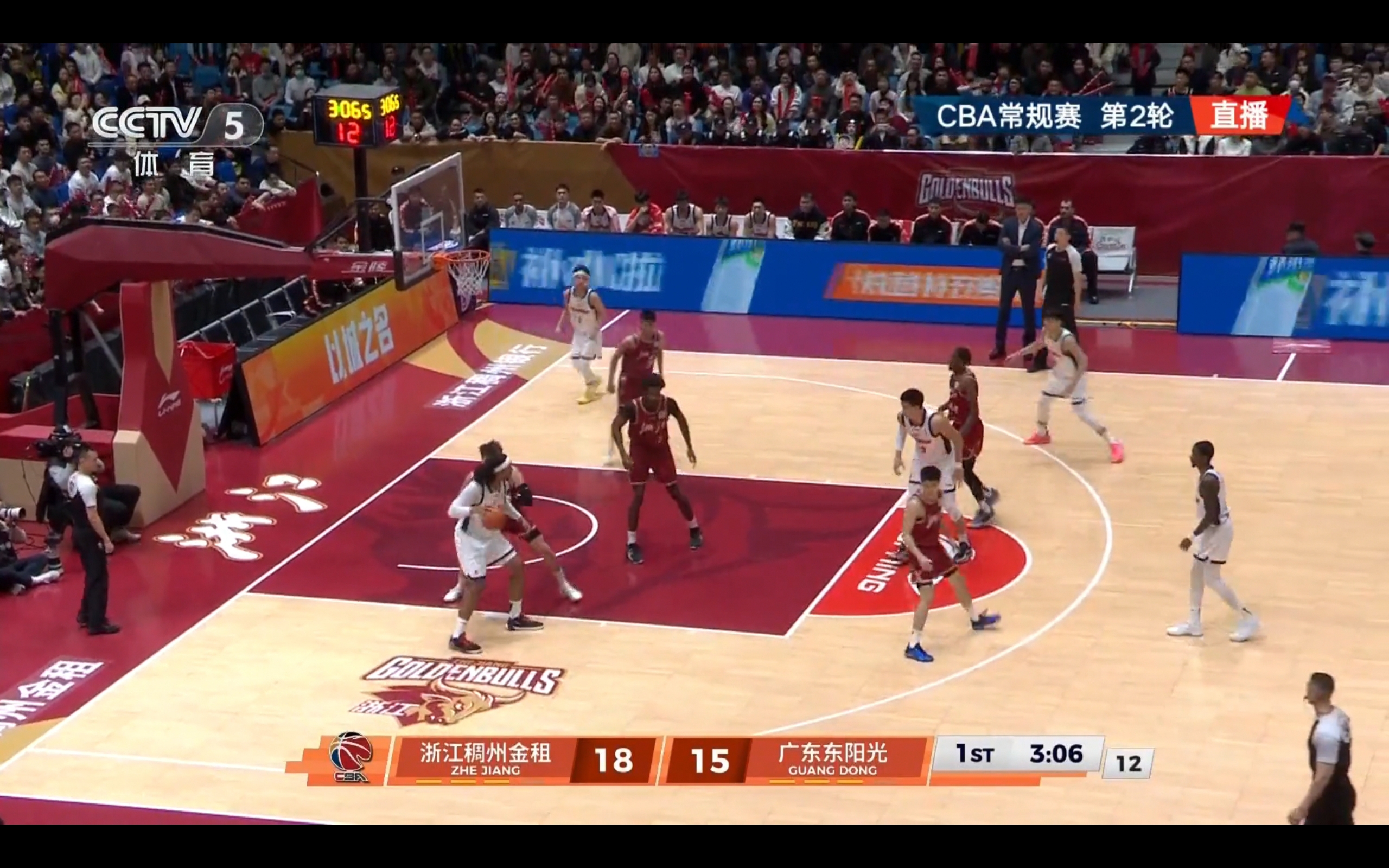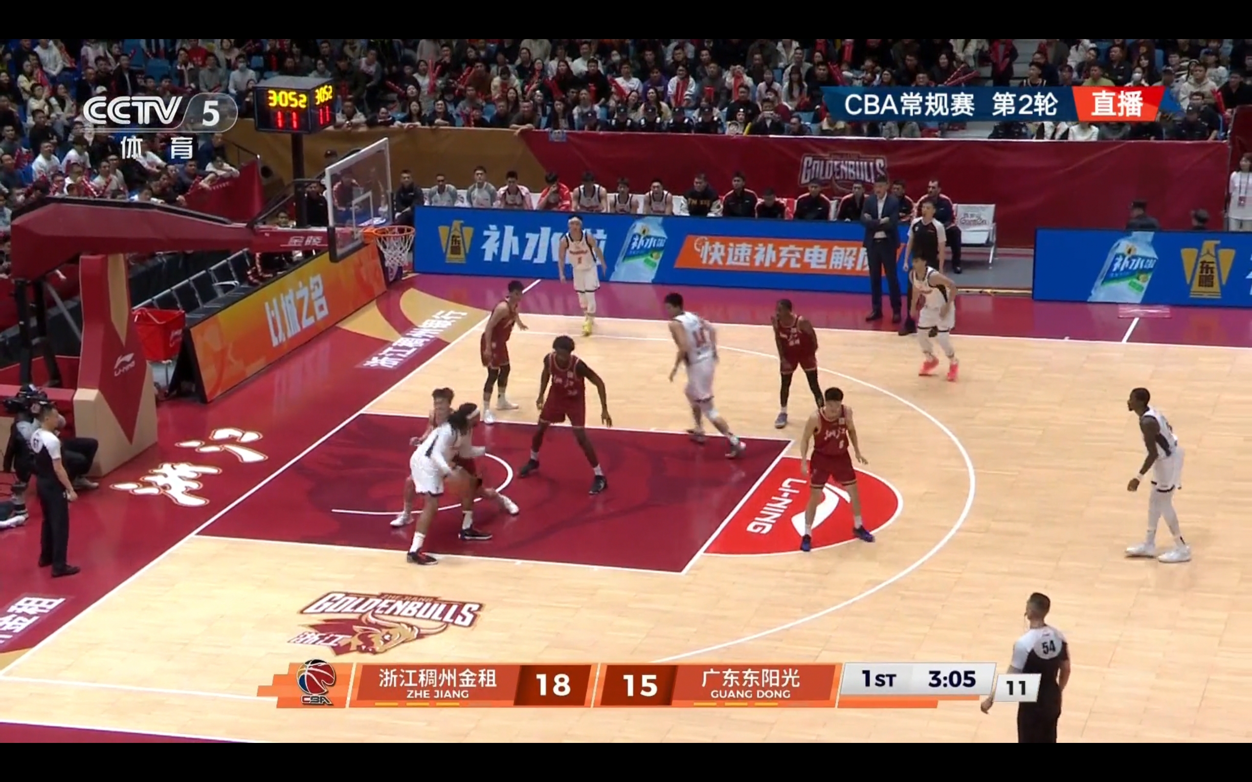 CCTV-5 and Yangshipin are broadcasting the CBA game between Zhejiang Chouzhou Rent and Guangdong Dongguang.