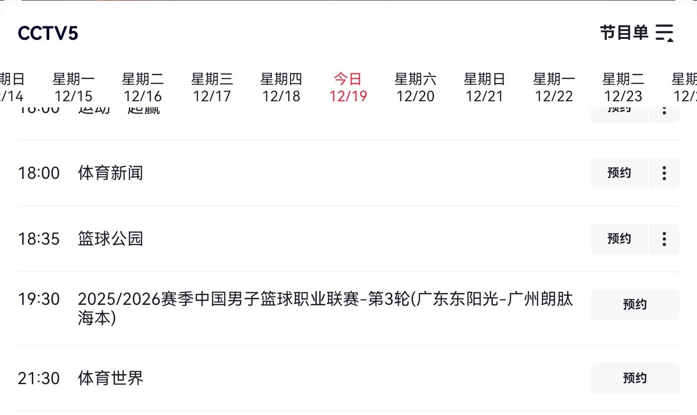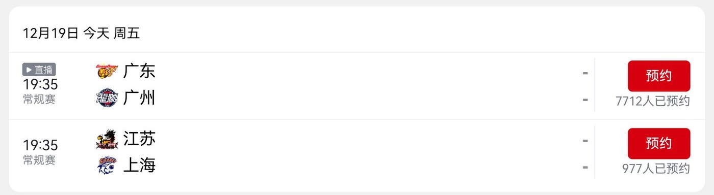 CBA schedule for December 19, 2025: Guangdong Dongyangguang versus Guangzhou Langtai Haiben, live on CCTV-5 and Yangshipin.